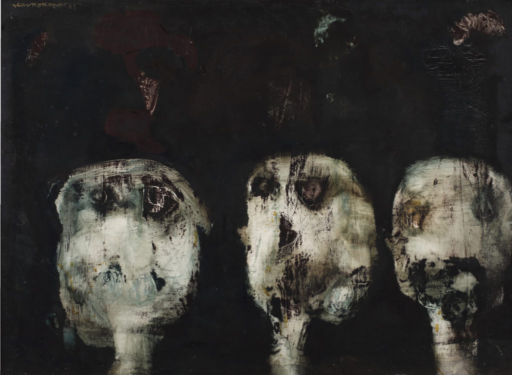 Alors, il est de toute importance que Kopac porte depuis déjà longtemps une attention extrême au corps comme au visage humain. D’autant que rien dans cette préoccupation passionnée ne saurait être attribué, de près ou de loin, à un retour au sujet. Au contraire même, quand il s’agit là d’une démarche définitivement étrangère à celle d’un nombre grandissant de peintres de plus en plus fascinés ou obsédés par les mutilations, la désintégration, l’anéantissement de la personne humaine : je pense ici à Bacon et à ses malheureux suiveurs. Pour la raison très simple que Kopac ne témoigne pas, ne proteste pas, ne constate pas, ne dénonce pas. Non, il rêve. Mais il rêve si intensément à travers le bleu vif, le jaune safran, le rouge pourpre, que les pièges de la peinture – les pièges de la matière, de la forme, du sujet – ne peuvent plus se refermer sur sa vision, je veux dire sur ce que nous ne savons plus, sur ce que nous ne savons pas encore, de nos silhouettes proches, lointaines, improbables et que Kopac s’emploie à nous montrer avec la rigueur des grands inspirés.