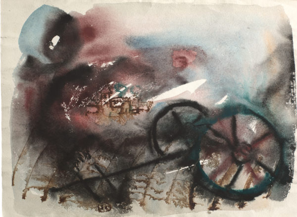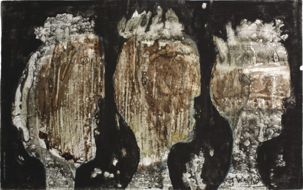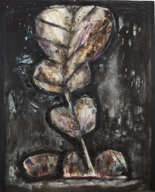 Matériaux de récupération, jeux du hasard. Celui des balafres, des signes perdus, des mots noyés, des empreintes avant qu’elles ne s’effacent dans l’eau porteuse des couleurs qui s’y fondent, de la tache enfin.